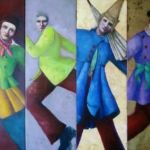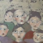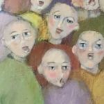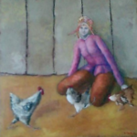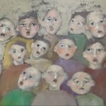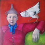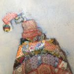 Je travaille à la peinture acrylique sur du médium. J’ajoute aussi parfois des collages de papiers que je découpe ou déchire quand j’estime que c’est nécessaire.